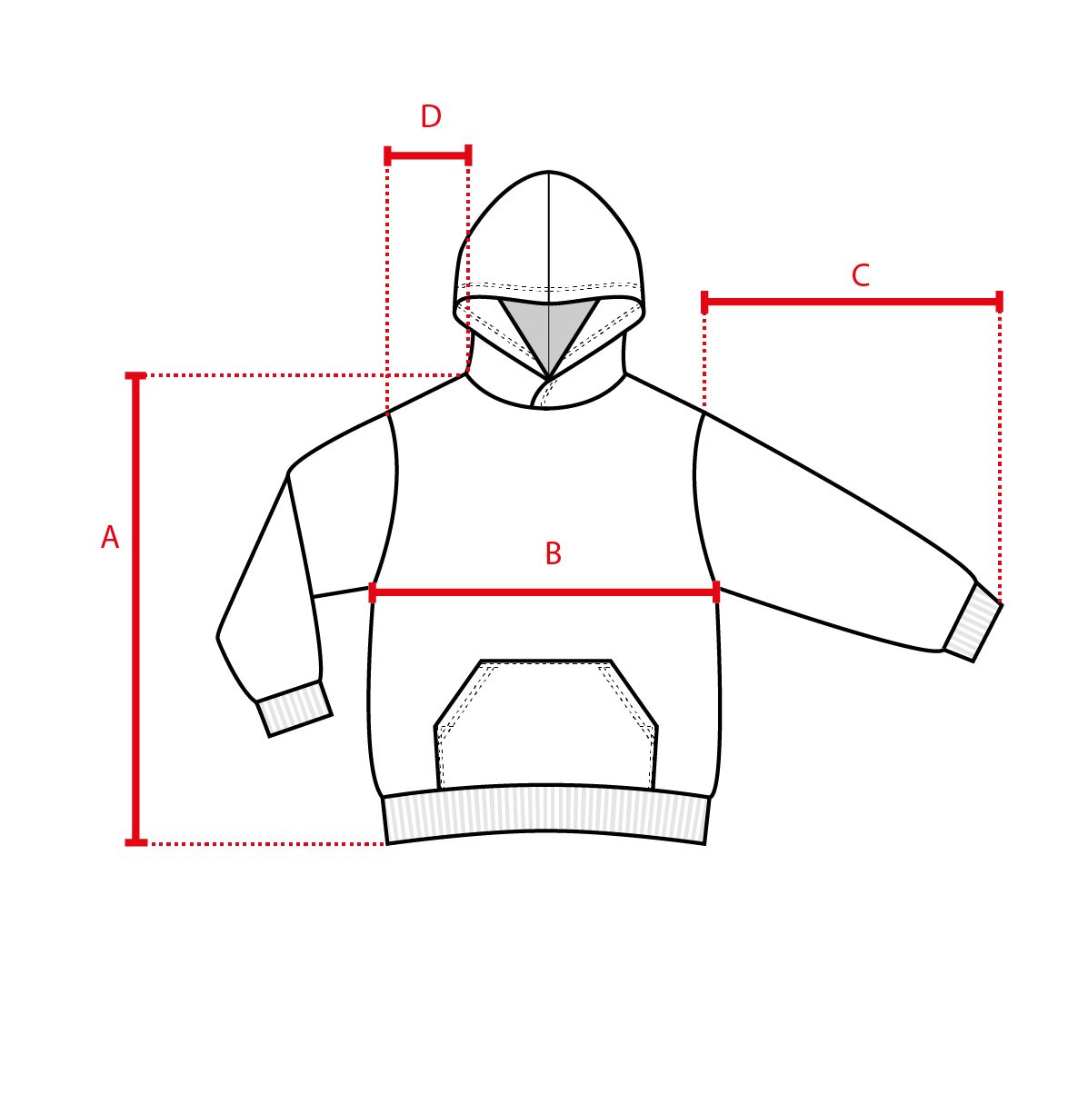 | Talle | A (largo) | B (ancho) | C (mangas) | D (cuello a hombros) |